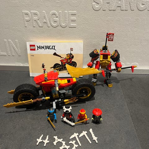 Sjældent Ninjago sæt 71739, men 10 års jubilæumsfigur. Super at bygge og mange timers leg da den kan være flere køretøjer og flyvere på en og samme tid. Der er solskader på flere hvide klodser som det fremgår og der mangler en hvid klods og en lille guld klods. Ved ikke om prisen er rigtig men giv et bud hvis du er interesseret men synes prisen er for høj.