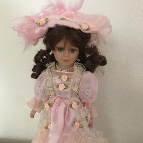 Porcelænsdukke m.hvid kjole