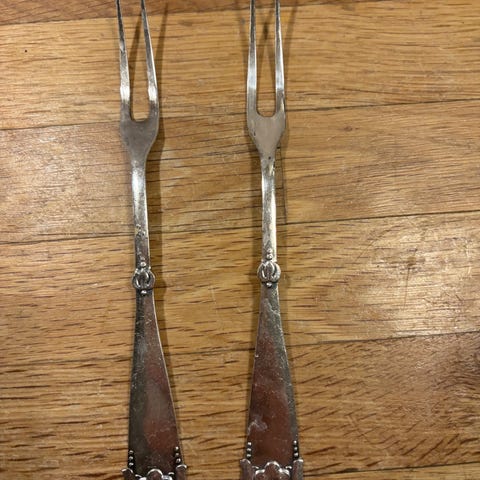 Sølvgaffel 5 stk 2 tårnet 1 pålægsgaffel