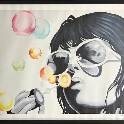 Trykket er signeret af kunstneren nederst og fremstår indrammet i sort ramme.