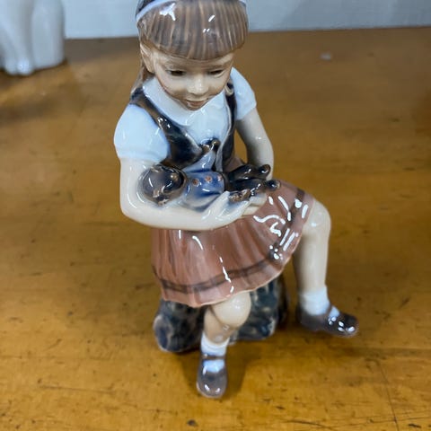 Dahl Jensen 1288 sjælden pige med æblegren 1 sort 16 cm høj uden skår og afslag