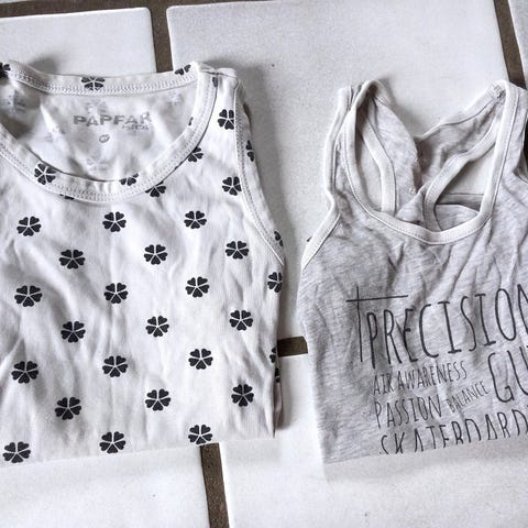 Undertrøje, str. 98, grå med lysegrønt print foran, kr. 10,00.