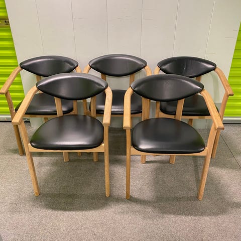 Daisy. Massiv egetræs-armstol, med ægte sort læder, produceret i Bogense på Fyn