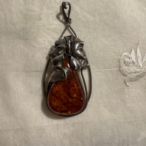 Vedhæng i sølv med rav og ægte perler