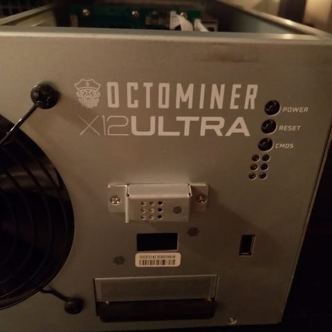 Mining rig med bundkort, cpu, ssd og risers