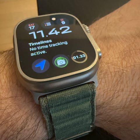 Apple Watch Ultra smartwatch med grå trail loop og sports loop
