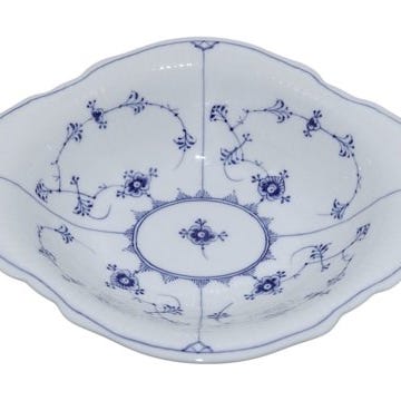 Royal Copenhagen Musselmalet Riflet, sjælden bordlampe monteret med en blå skærm. Den hører til Musselmalet Riflet men er med Helblonde kant.