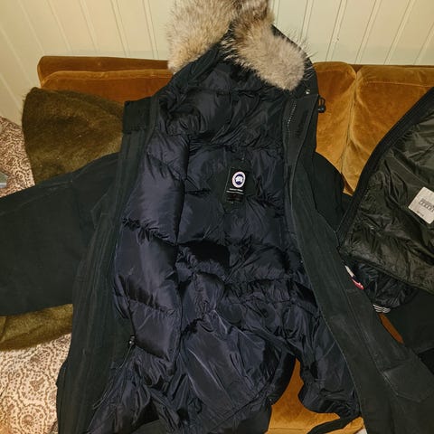 Canada Goose Vinterjakke i størrelse XL til herre. Jakken er sort. Designet til udendørs brug i koldt vejr.