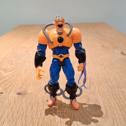 Web Trap Catcher Spider-Man fra Marvels Spider-Man the Animated Series. Flip-n-Trap Wave. Udgivet af Toy Biz i 1998. Figuren har slitage specielt i ansigtet. Se også mine andre annoncer for andet retro legetøj.