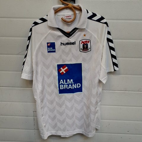 AGF fodbold trøje med sponsorater ,Afhentes i:,Røde Kors Egå (751),Bemærk at mail, chat og beskeder ikke besvares, og varen skal købes på knappen "Gå til varen"