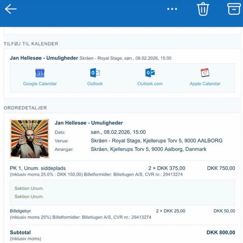 Vejle Musikteater, lørdag d 17-1-26 kl 20. 2 stk