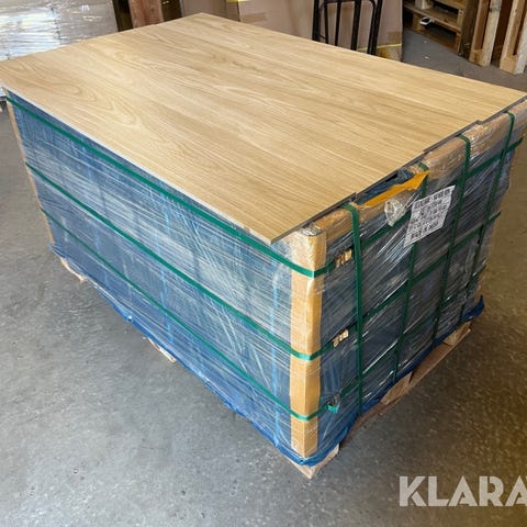 Kommer på 4 paller med i alt 164 pakker med 1,20 m2 i hver pakke