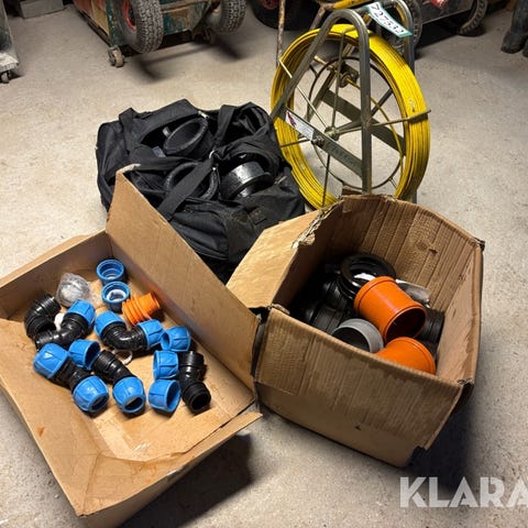 Lottet består af 3 paller med diverse kloakfittings i forskellige dimensioner