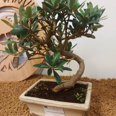 Denne elegante bonsai bringer den solrige charme fra syd til dit hjem. Med sin grå stamme og sølvgrønne blade står oliventræet som et symbol på fred, visdom og styrke.