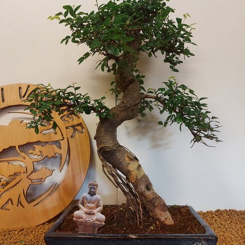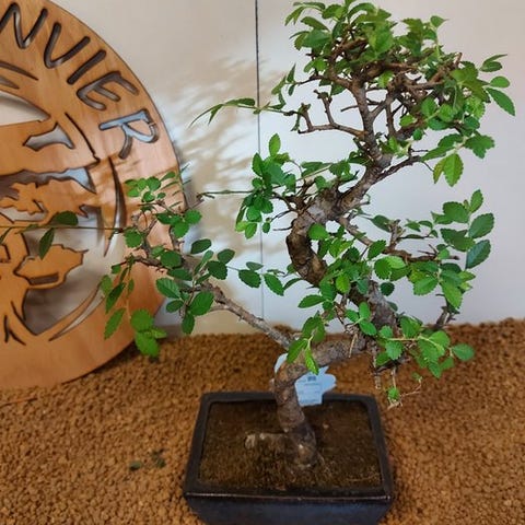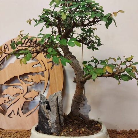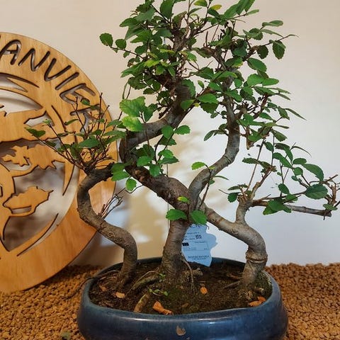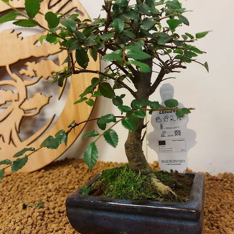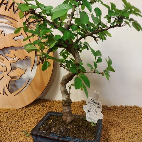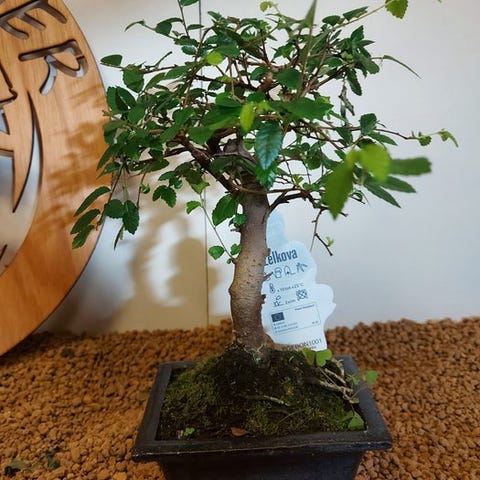 De Zelkova bonsai, også kaldet Japanse iep, udstråler ro og elegance. Med sine fine grene, takkede blade og elegante form er den et symbol på balance og naturlig skønhed. Denne stærke og elegante træ ændrer sig med årstidernes skiften, fra friskgrønt om foråret til varmt gyldent om efteråret.