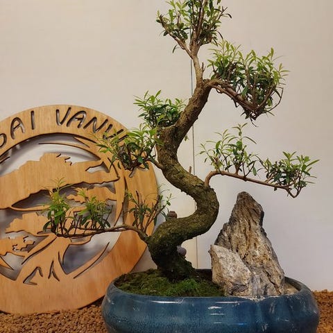 Denne elegante bonsai bringer den solrige charme fra syd til dit hjem. Med sin grå stamme og sølvgrønne blade står oliventræet som et symbol på fred, visdom og styrke.