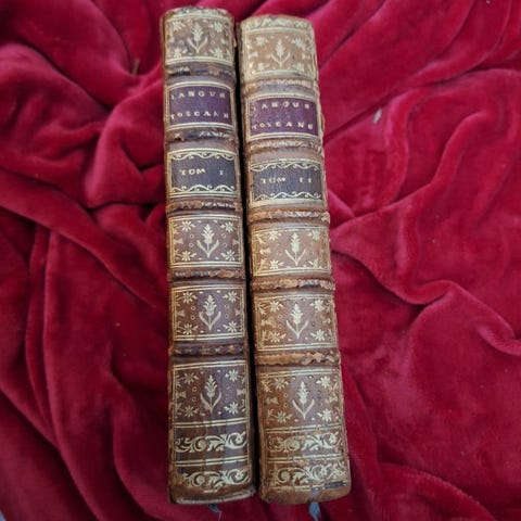 Eksemplar udarbejdet i en smuk indbinding med våbenskjolde (ikke-identificerede) fra perioden. Fuldt lilla kalveskind, ryg med nerve prydet, guldblomster og inddelinger. Våbenskjolde fremhævet i guld i midten af forsiderne. Rulletekster på kanterne.
