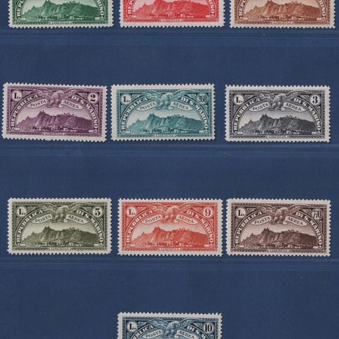 Trieste – zone A, PN-se Starkovertrykkede pakke-posts på to linjer – Undertegnede Mondolfo, ni værdier fra 1947–1948, Sassone S.47a, nyt uden linguella og med certifikat. Klik på den blå "gå til varen" knap, for at købe eller byde på denne vare. Den samlede pris vil blive vist inden du afgiver dit bud.