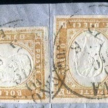 Fragt sendt fra Parma til Castiglion Chiavarese den 24. november 63, frankeret med en par cent 1. Frimærker annulleret med den dobbelte ducal ring af Parma, vurderet til 12 point. Der er på vej en meget sjælden annullering fra Castiglion Chiavarese, vurderet til R2 point, men ikke talt med, da den er på vej. Sammen er den meget sjælden, med perfekte og smukke frimærker. Til specialiseret samling. Detaljeret certifikat med forklaring fra Dr. M. Manzoni. Værdi i kataloget € 6200,00++.