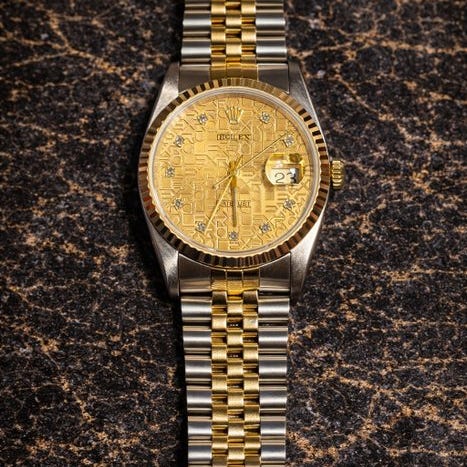 Denne herre-Rolex 16263 overskrider grænserne for et traditionelt DateJust-ur. Det er også kendt som "Thunderbird" eller "Turn-o-Graph", hvilket repræsenterer et afgørende stykke af Rolex-urhistorien. Oprindeligt lanceret i 1950'erne var Thunderbird den banebrydende Rolex-model, der introducerede en roterende tidtagingsring, og det første Rolex sportsur til at have en to-tonet finish.