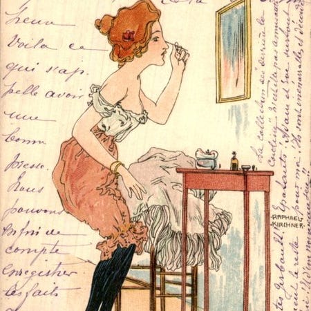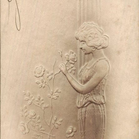 Tre Raphael Kirchner-kort fra 1900–1905 med en kvinde og hvid rose, signerede og u-signede, i pæn stand. Klik på den blå "gå til varen" knap, for at købe eller byde på denne vare. Den samlede pris vil blive vist inden du afgiver dit bud.