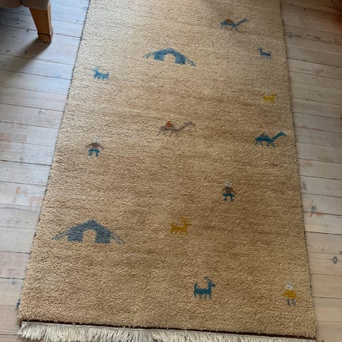 Tilbuddet er et håndvævet Kelim i Gabbeh-design.