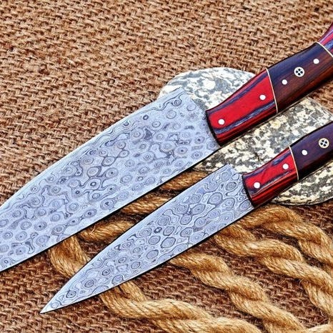 Disse knive er fra Obsidian, og mærkets navn signalerer professionelle køkkenknive. Denne duo af knive er meget fint lavet med præcision og klasse. Modellerne er meget professionelt formede, smukt designet og skåret meget fint. Knivene er håndlavede med stil og klasse. Håndtagene er lavet af fint udvalgt burl-træ. Med læderskede.