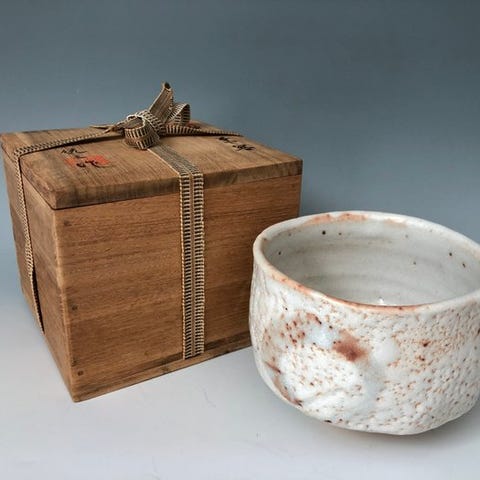Sættet leveres med sin originale trææske, indgraveret med 'Bizen / Shuki (sake-ware)'.