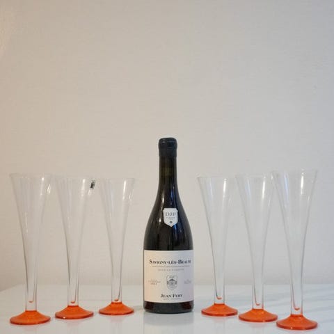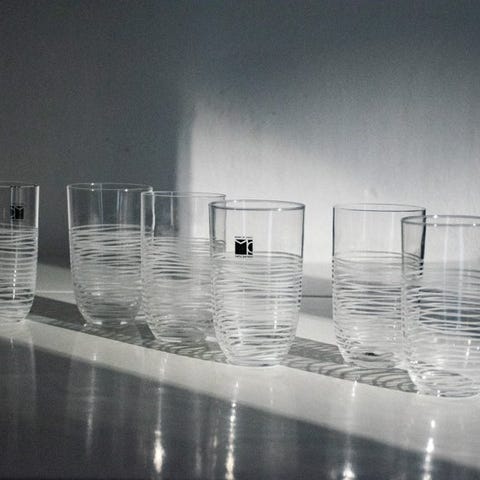 Fabelagtigt sæt bestående af 6 originale glas af Carlo Moretti, komplet med 2 flasker Spritz produceret af 'La gioiosa'. Glasset er rent venetiansk krystal, som kun Carlo Moretti kunne producere. Denne antikke formel, opdaget i Murano omkring 1450, blev hemmeligt bevaret af øens mesterglasblæsere; med sin glans og lethed giver den objekterne en så delikat fornemmelse af fornøjelse ved berøring. Ornamentet er personligt designet af Carlo Moretti, især bunden, der er blevet skåret af Murano-glasmestre.