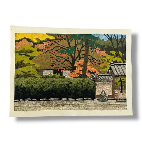 Begrænset udgave tryk af Kinoshita Daimon (f. 1946) med titel Daigorō Takamiyama aka AZUMAZEKI aka Daigoro Watanabe formerly Known as Jesse James Wailani, udgivet af Kyoto Hanga, udhugget af Endo, trykt af Shimizu, underskrevet, 1985, 40 × 27 cm, Japan, i fremragende stand. Klik på den blå "gå til varen" knap, for at købe eller byde på denne vare. Den samlede pris vil blive vist inden du afgiver dit bud.