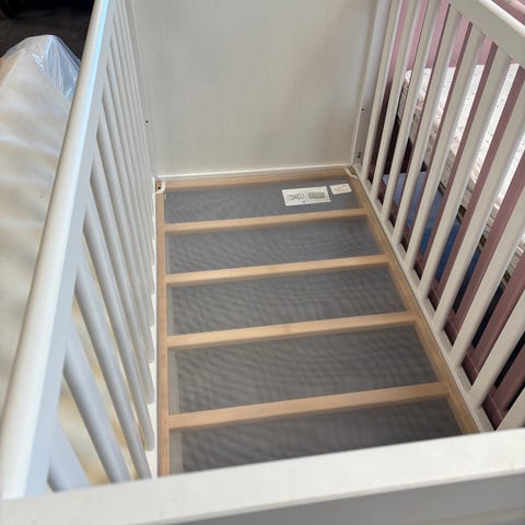 Vores datter har hovedsageligt sovet i dobbeltsengen lige ved siden af tremmesengen.