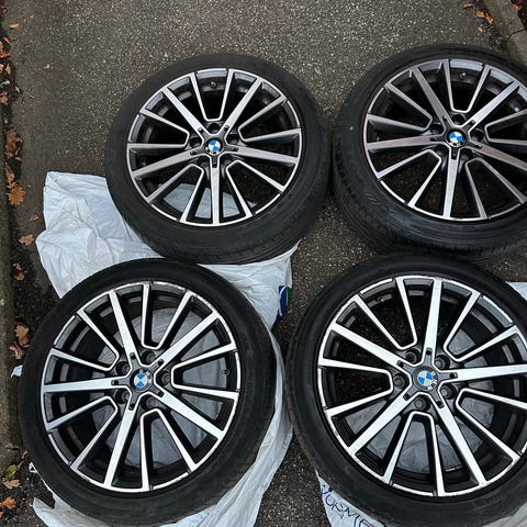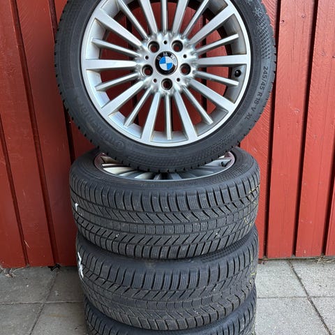 Brugte vinterdæk + fælge til BMW 330 og tilsvarende. Har 2-3 mm slidmønster tilbage.
