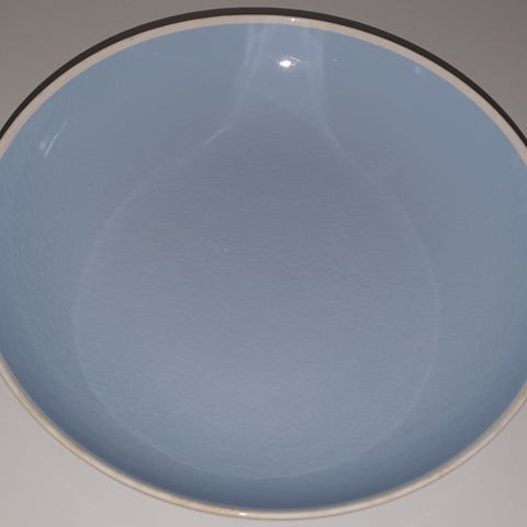 Fremstår uden afslag men med kraftig brugsslitage på bladribben i midten, småridser samt jævnt fordelte krakeleringer med lidt misfarvning jvf. fotos.