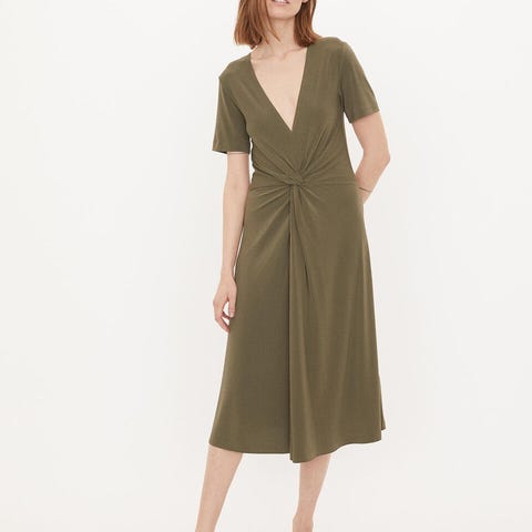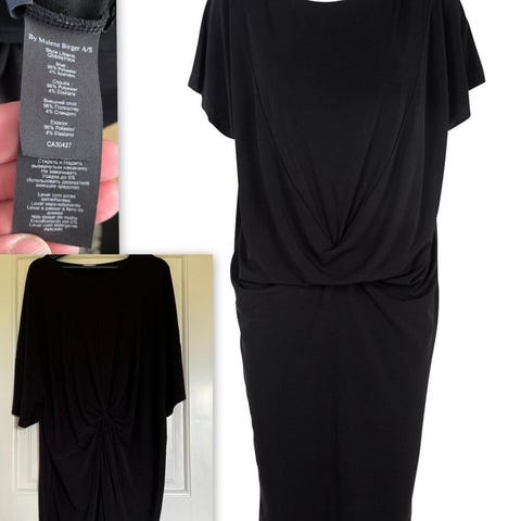 Flot Malene Birger kjole i mørkeblå med slå om effekt i overdelen (se fotos).