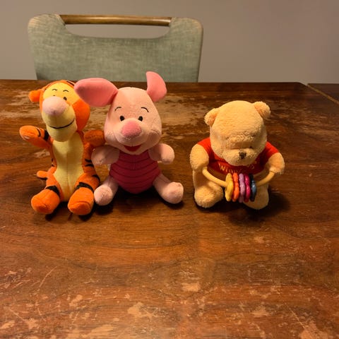 Peter Plys Tigger og Grisling bamser i blødt stof. To børnelegetøjsfigurer fra serien Peter Plys, velegnet til leg og samling.