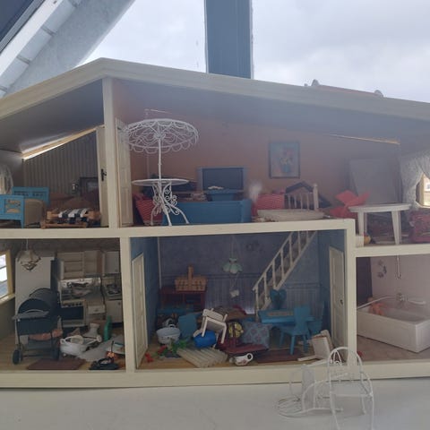Dukkehus fra Lundby med møbler og dukker.