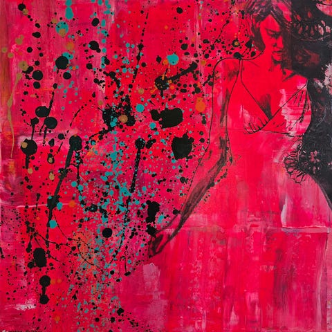 Abstrakt geometrisk maleri med farver i blå, lilla og rosa nuancer. Maleriet består af polygonale former og har et moderne udtryk. Velegnet til vægophæng i bolig eller kontor. Sender gerne + fragt 250 kr. har fravalgt fix-færdig 23918466