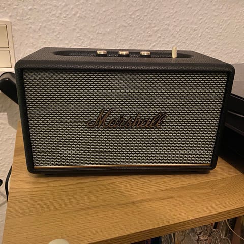 Jeg sælger en helt ny Marshall ACTON 3 højtaler. Den er kun lige taget ud af kassen og brugt 1 gang. Sælger for jeg ikke skal bruge den alligevel.