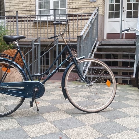 The bike is in pretty good stand and perfectly working, has 3 gears, front hand brake plus back pedal brake, bell, lights, kickstand, saddle and tires in good condition. Frame size 54 cm.
