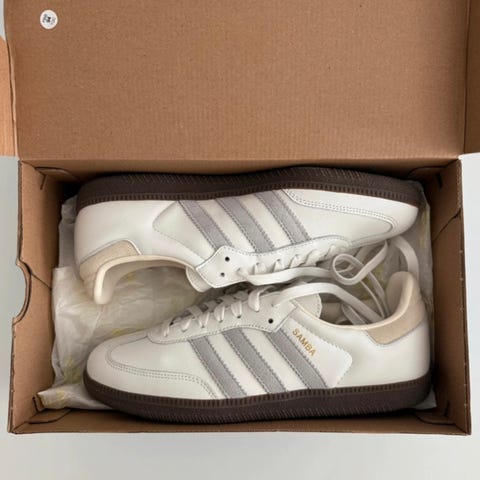 Adidas x Wales Bonner Samba sneakers i størrelse 37. Farven er cream med gule detaljer. Skoene er lavet i materialer, der er typiske for Samba-modellen.