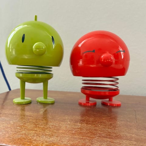 Hans Gustav Ehrenreich Busy Birdie Hoptimist i rød.