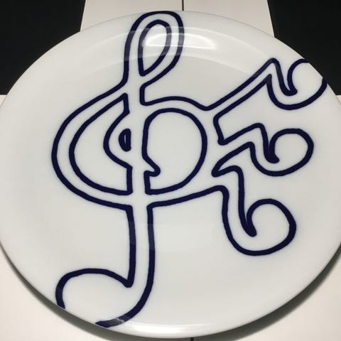 Royal Copenhagen Musica højhankskop med tilhørende underkop og desserttallerken.
