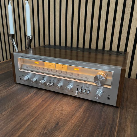 Meget pæn og velholdt Pioneer SX-737 stereo receiver. Spiller og fungerer perfekt. Alle lamper og knapper virker som de skal. Virkelig smuk og velspillende receiver. Skal absolut ses og høres. Den er fra ca. 1974 og vejer hele 13,2 kg, så det er fra dengang de byggede kvalitets hi-fi i lækre materialer og flot design.