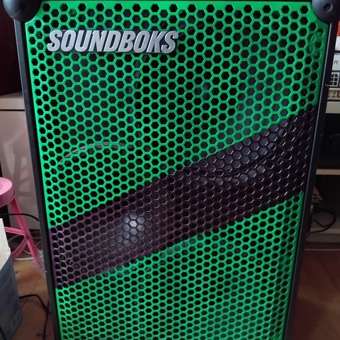 Hej, jeg sælger min Soundboks 2, da jeg ikke får den brugt efter jeg har fået børn. Nu står den desværre bare og samler støv. Den fungerer og spiller helt uden fejl. Der medfølger to batterier med god kapacitet og en lader. Der er småskrammer på hjørnerne og på ID-skiltet, men ellers er den velholdt. Tænd/sluk knappen sidder en smule løst, men den skal bare skrues helt fast fra indersiden. Det kan jeg gøre inden salg, men da jeg ikke har haft den åben før, har jeg ladet den stå som den er for nu.