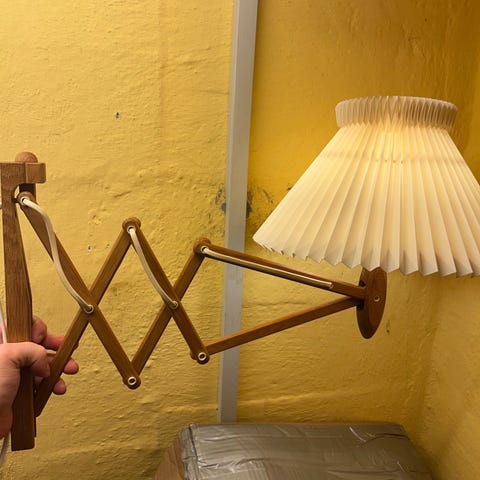 Stor Le klint sakselampe med sort stofledning.