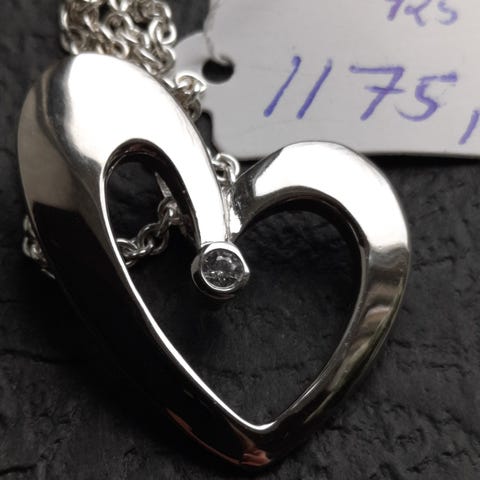 Smuk, feminin og elegant halskæde fra Randers Sølv udført i Sterlingsølv med stort smukt vedhæng udført i blank Sterlingsølv med motiv af et hjerte.