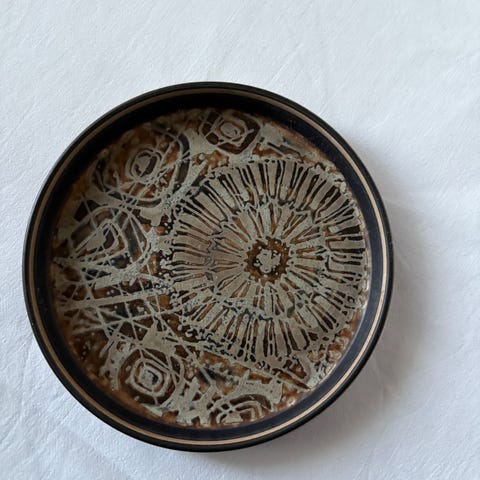 Royal Copenhagen fajance, Baca blåt fad. Måler 27x27 cm. Højde ca. 3 cm. Designet af Jonna Gerber.