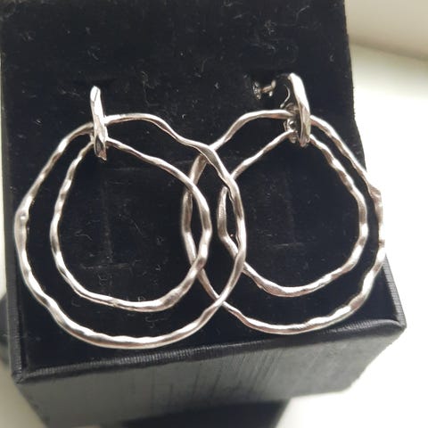 Store og smukke ørestikker/creoler fra Randers Sølv udført i Sterlingsølv i et rillet design.