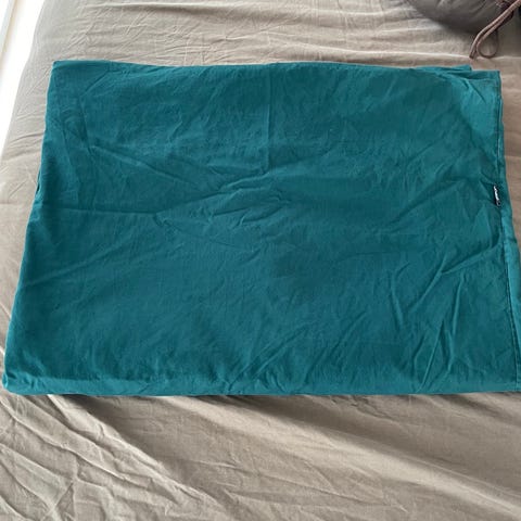 Pudebetrækket har en foldet lukning og dynebetrækket bliver lukket med en usynlig lynlås. Har lidt brugsspor ved lynlås, men er ellers i pæn stand.