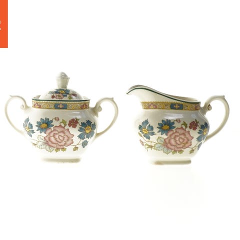 Denne keramiske thekande er dekoreret med et farverigt blomstermotiv og har en lille hank samt tud for nem hældning. Kanden har en kapacitet, der passer til servering af fløde eller mælk og måler 14 cm i højden. Dens primære farve er beige med blomstrede accenter i blå, rød, gul og grøn.